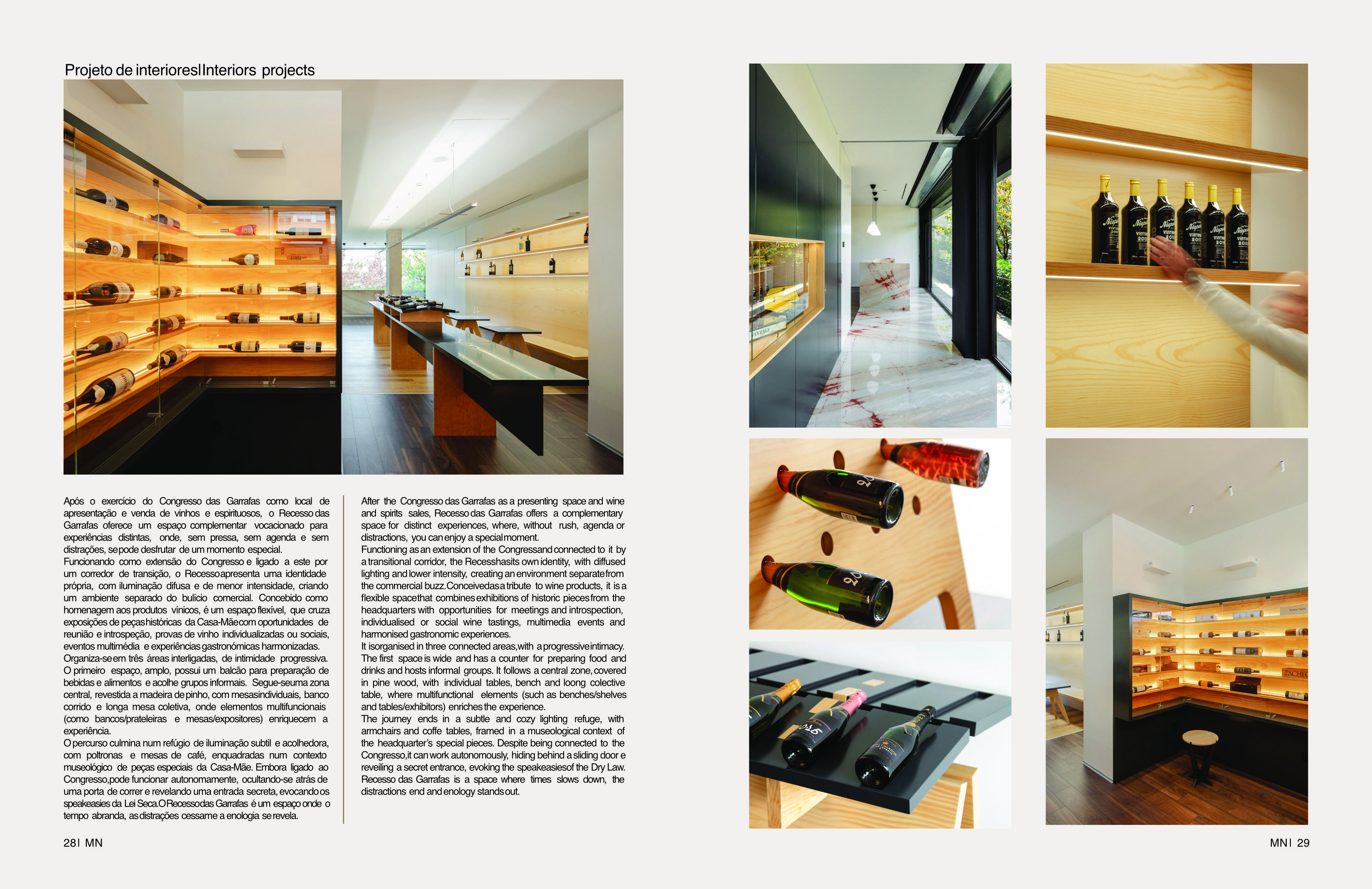 Functioning as an extension of the Congress and connected to it by a transitional corridor, the Recess has its own identity, with diffused lighting and lower intensity, creating an environment separate from the commercial buzz. Conceived as a tribute to wine products, it is a flexible space that combines exhibitions of historic pieces from the headquarters with opportunities for meetings and introspection, individualised or social wine tastings, multimedia events and harmonised gastronomic experiences.