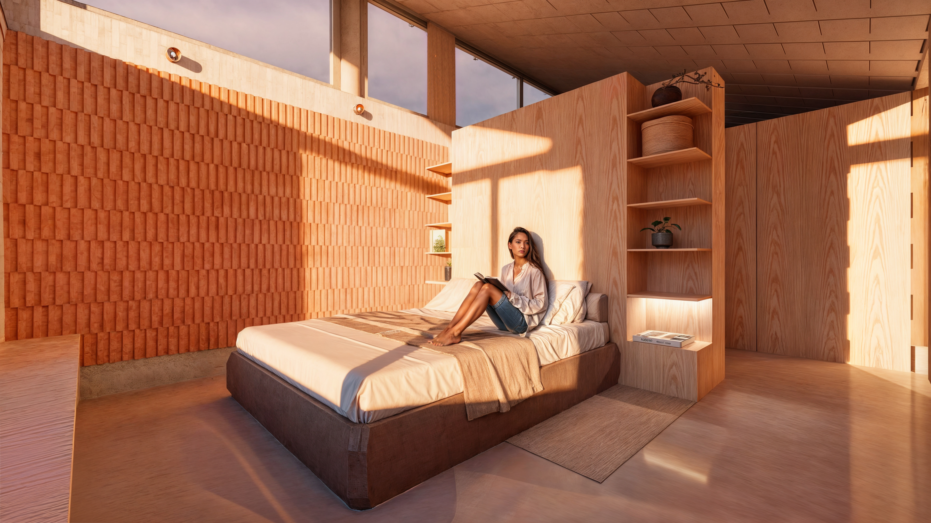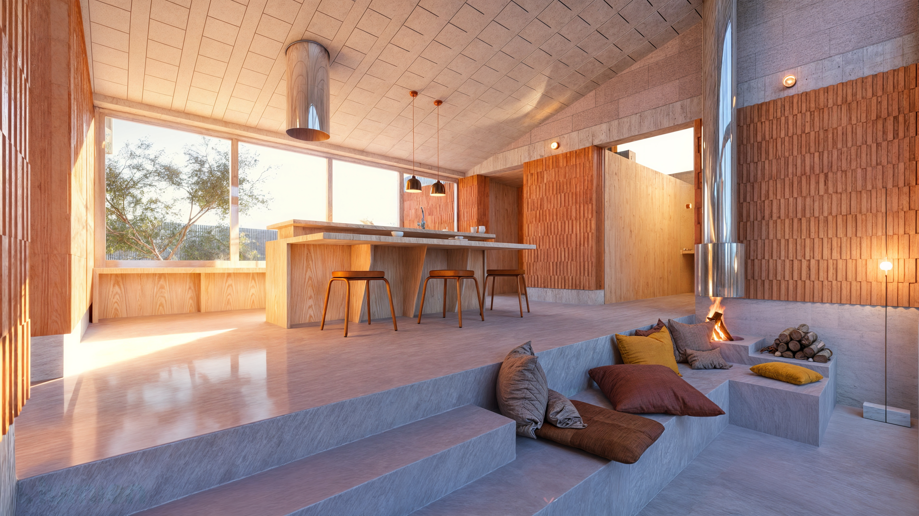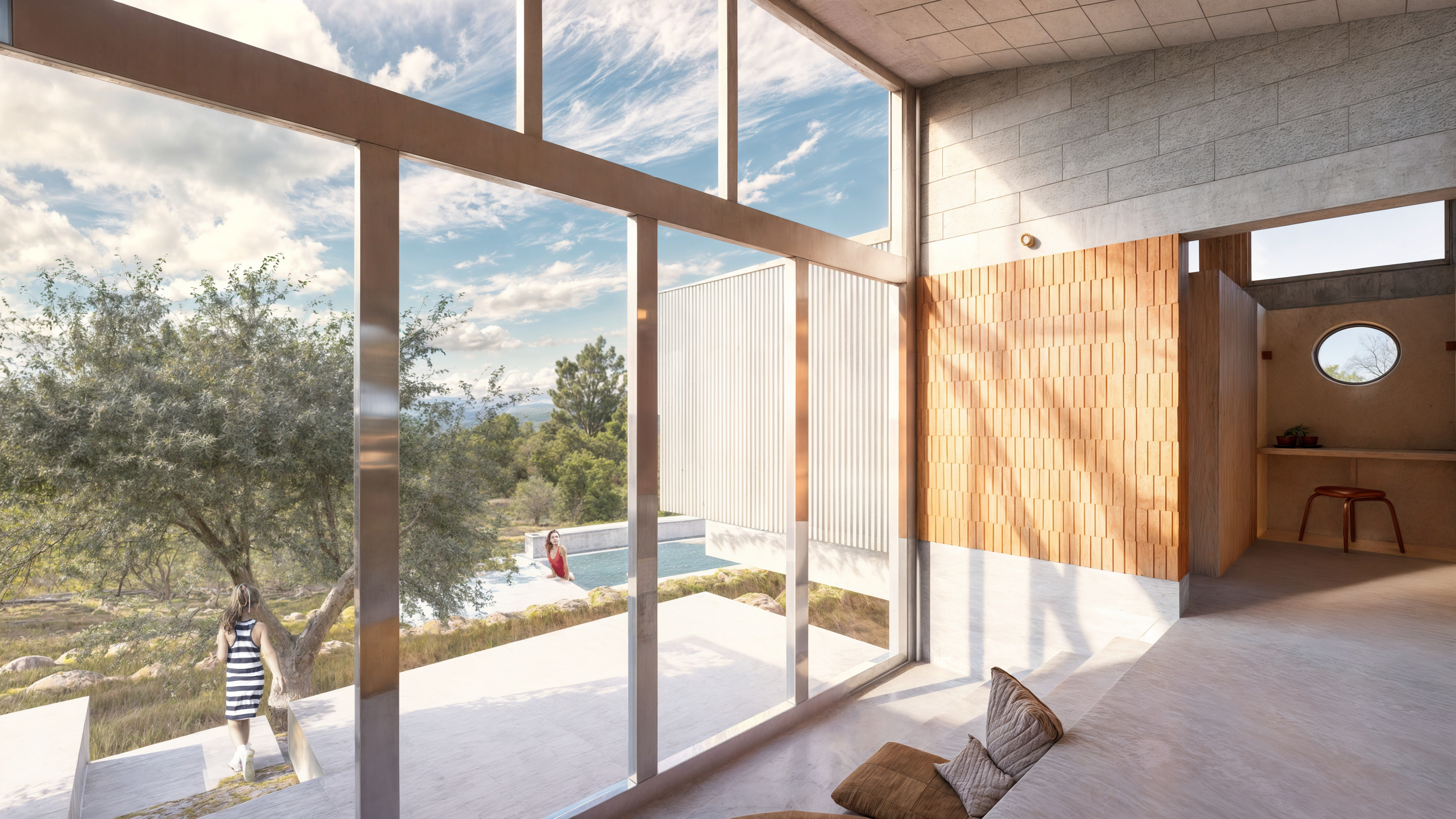 Com um programa voltado para o turismo e a ocupação ocasional, o interior organiza-se simetricamente à volta do núcleo social da casa, expandindo-se sobre a paisagem, e a materialidade é cuidadosamente modulada de maneira a produzir, sobre o mesmo tema, cores e texturas confortáveis e convidativas.